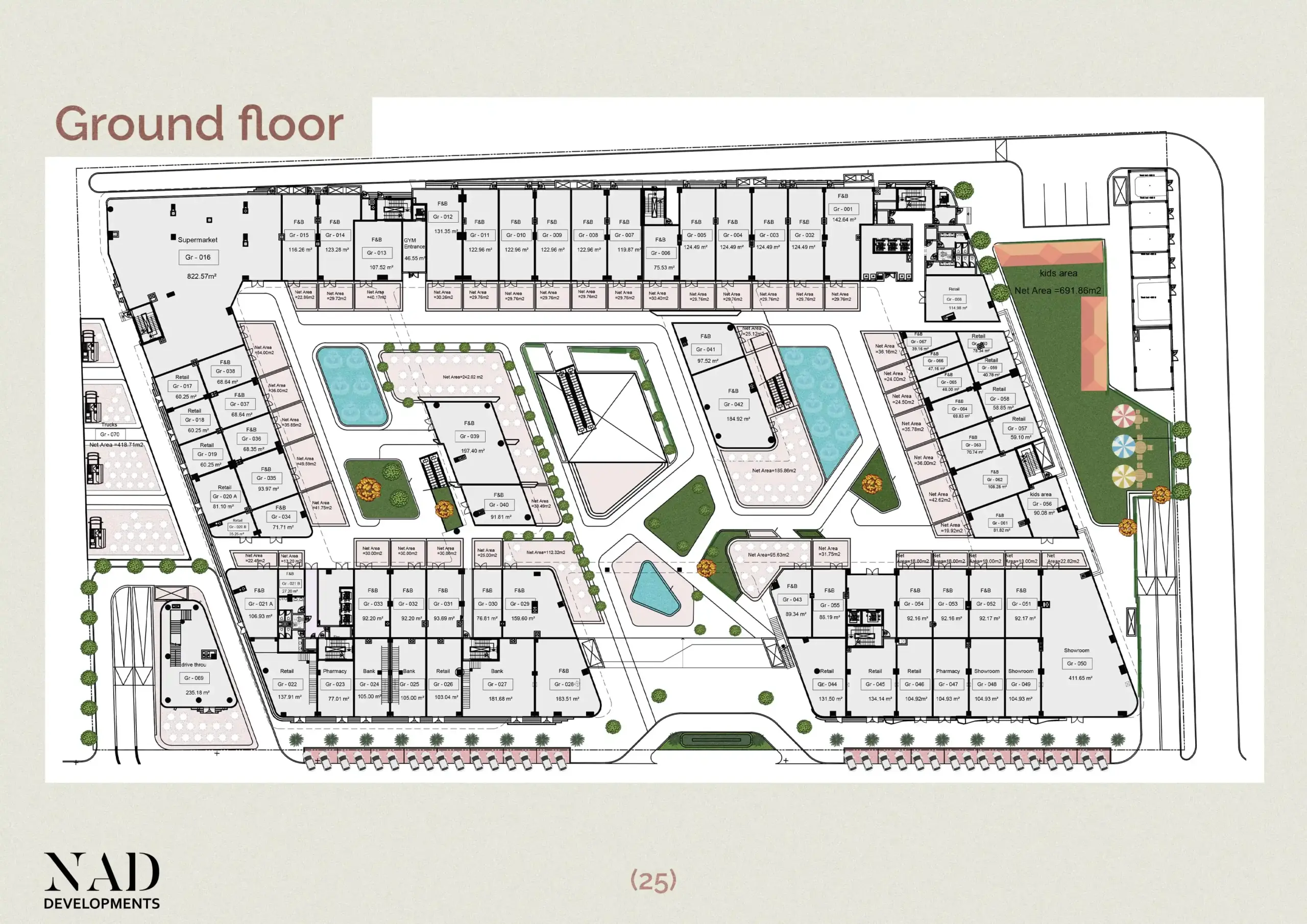 Comprehensive shopping convenience within the complex.